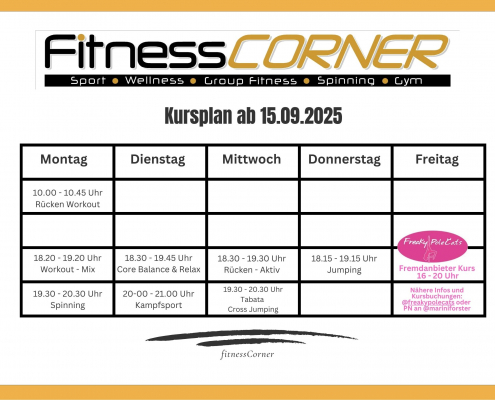 Egal ob du nach einem stressigen Arbeitstag abschalten, deine Fitness auf ein neues Level bringen oder einfach nur Spaß haben möchtest – unsere Group Fitness Kurse im Fitnesscorner Neunburg sind genau das Richtige für dich!